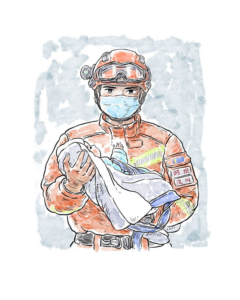 “汶川哥哥”怀抱婴儿转移