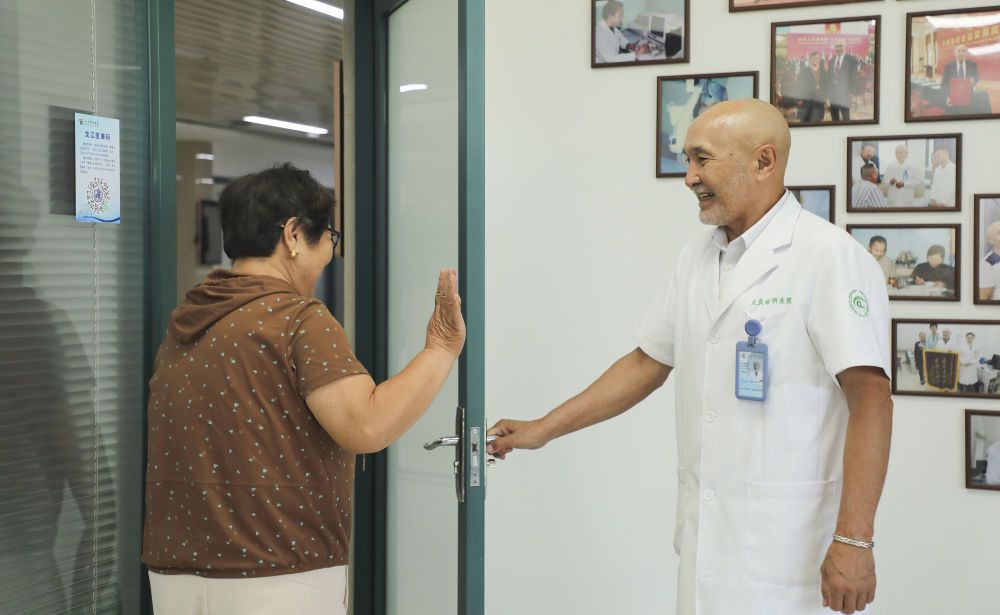 黑龙江大庆眼科医院的哈萨克斯坦籍眼科专家萨夫留别克在中国工作长达27年,培养出数十位优秀中青年医生,接诊眼疾患者超过20万人。“现在中国眼科医疗水平很高,也有世界领先的设备。”萨夫留别克说,从前都是要出国参加学术交流,现在在中国国内就可以参加高水平的学术交流活动。这是2025年8月8日,在黑龙江省大庆眼科医院,萨夫留别克送患者出诊室。