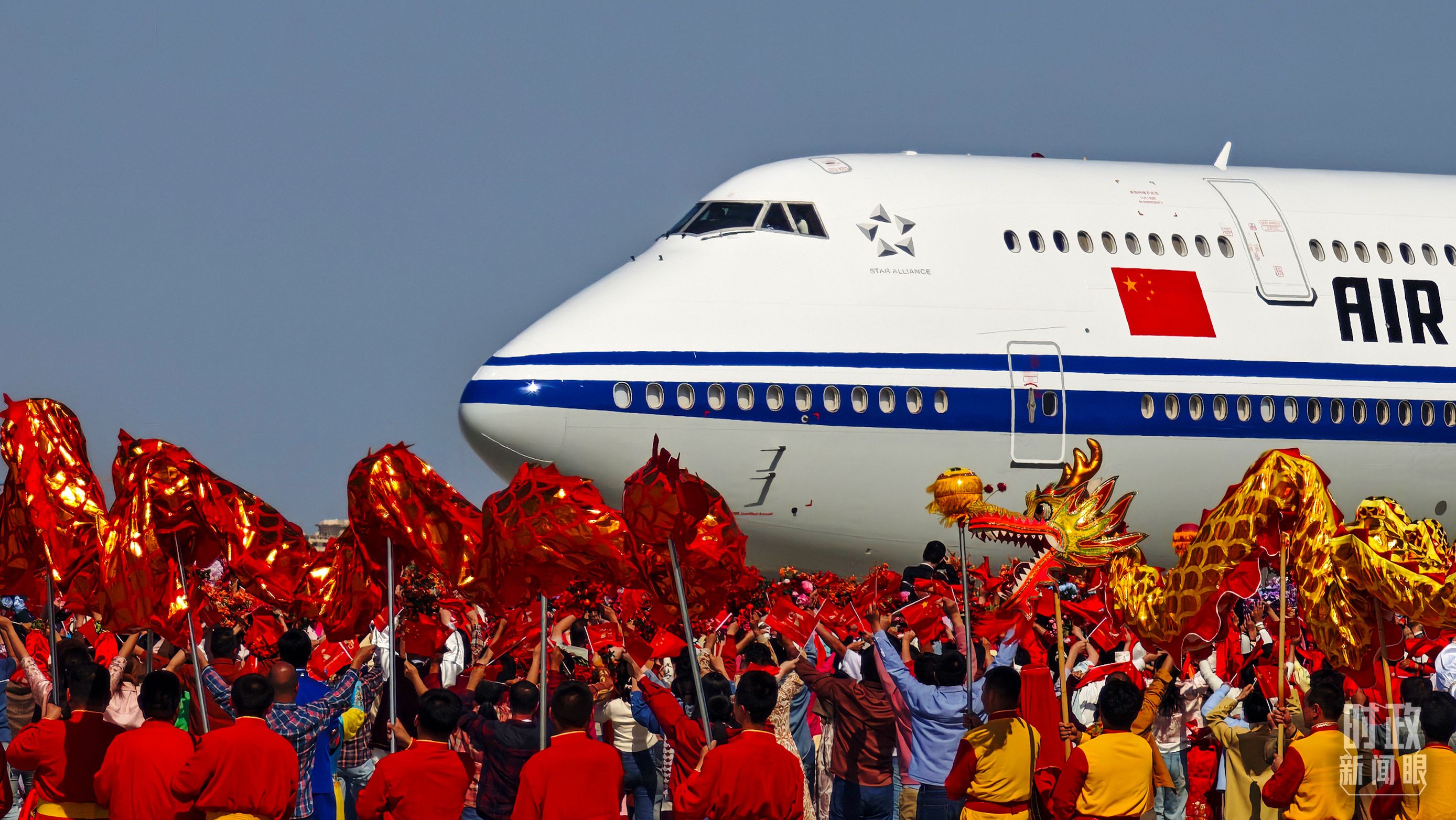 23日下午,乌鲁木齐天山国际机场鼓乐喧天。总书记乘坐的专机在机场降落,等候在停机坪的新疆各族各界群众热烈欢呼。