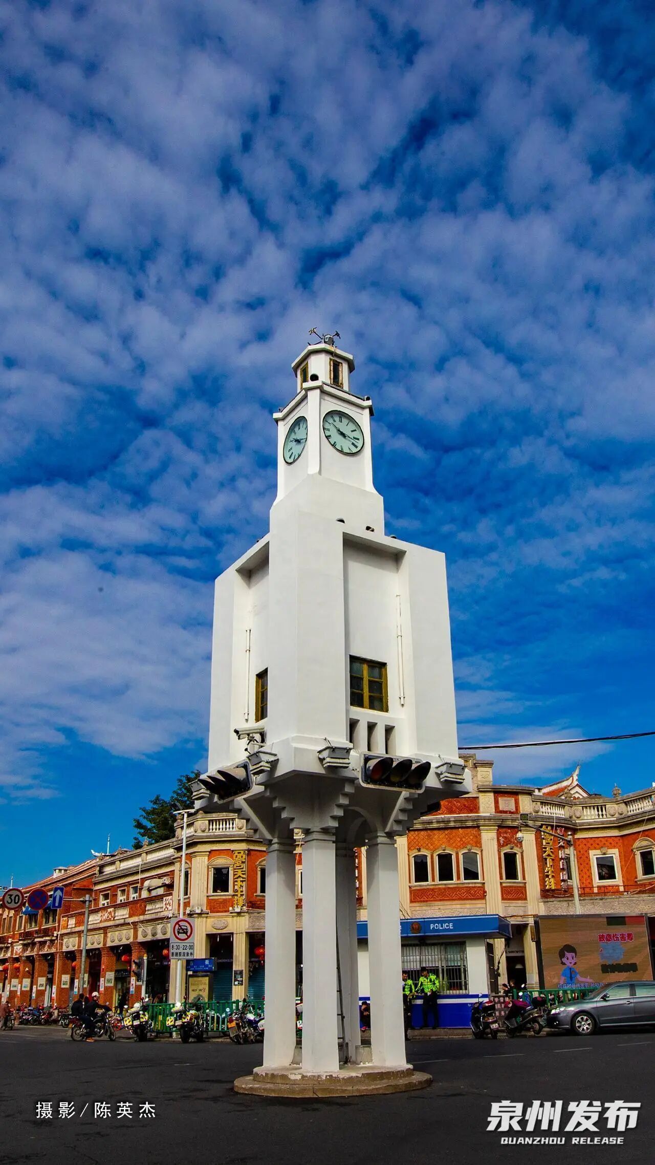 在古城的“心口”位置,白色钟楼静静伫立,像一枚盖在时光信封上的“泉州印章”。它既带着中国传统斗拱的端庄,又融入了欧式建筑的优雅,两种风格奇妙交织,成为每一位旅人镜头中不可或缺的风景。它不仅守护着时间,更是一座城市文明的温柔注脚。