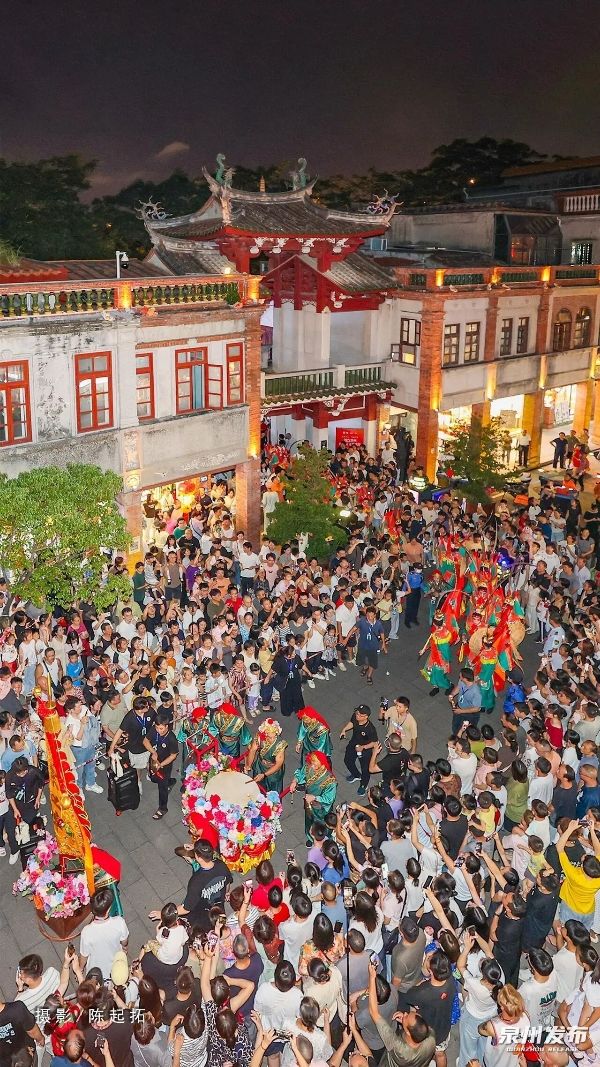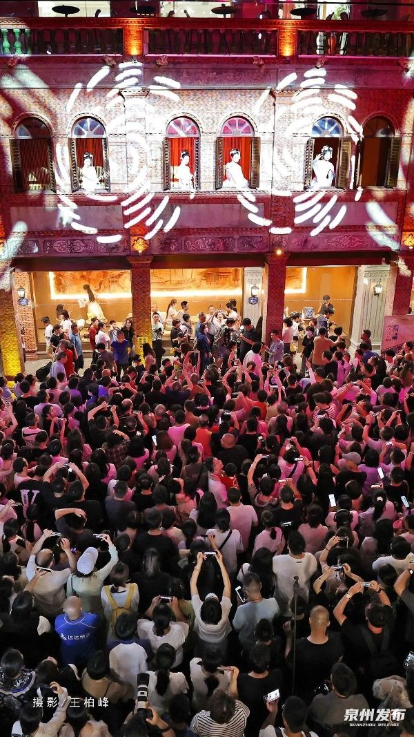 锣声起,商门开。焕然一新的中山南路上,人潮涌动。一场仿宋古礼,重现了“涨海声中万国商”的繁华盛景。市舶司前报关声起,提举率仪仗迎宾,万国商船“停泊”于刺桐古港——千年前的泉州繁华,在这一刻的烟火气中鲜活落地,翩然归来。